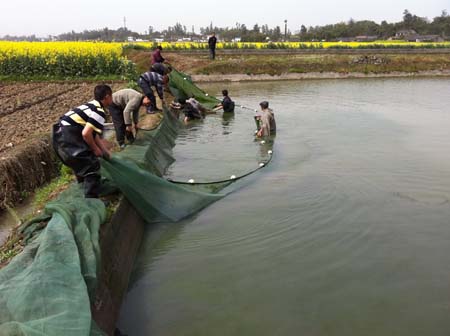 養(yǎng)殖大口鯰豐收的場景